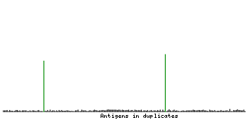 At the top of the view, the position of the antigen (identified by the corresponding HPA identifier) is shown as a green bar. A yellow triangle on the bar indicates a <100% sequence identity to the protein target.