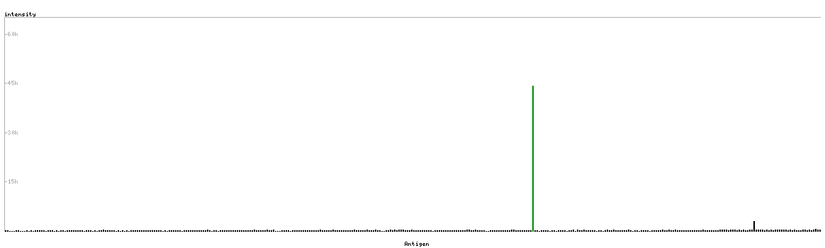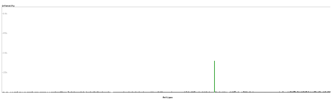 The curve in blue displays the predicted antigenicity i.e. the tendency for different regions of the protein to generate an immune response, with peak regions being predicted to be more antigenic.The curve shows average values based on a sliding window approach using an in-house propensity scale. (read more).