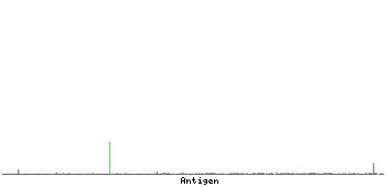 At the top of the view, the position of the antigen (identified by the corresponding HPA identifier) is shown as a green bar. A yellow triangle on the bar indicates a <100% sequence identity to the protein target.
