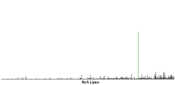 The curve in blue displays the predicted antigenicity i.e. the tendency for different regions of the protein to generate an immune response, with peak regions being predicted to be more antigenic.The curve shows average values based on a sliding window approach using an in-house propensity scale. (read more).
