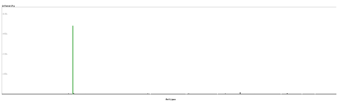 The curve in blue displays the predicted antigenicity i.e. the tendency for different regions of the protein to generate an immune response, with peak regions being predicted to be more antigenic.The curve shows average values based on a sliding window approach using an in-house propensity scale. (read more).