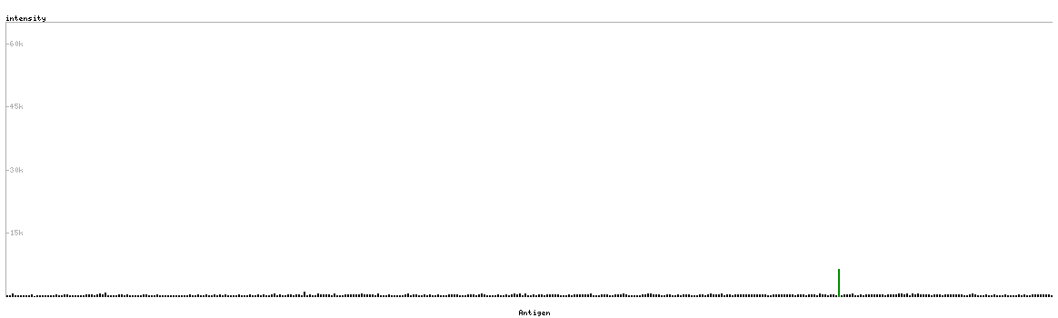At the top of the view, the position of the antigen (identified by the corresponding HPA identifier) is shown as a green bar. A yellow triangle on the bar indicates a <100% sequence identity to the protein target.