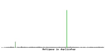 At the top of the view, the position of the antigen (identified by the corresponding HPA identifier) is shown as a green bar. A yellow triangle on the bar indicates a <100% sequence identity to the protein target.