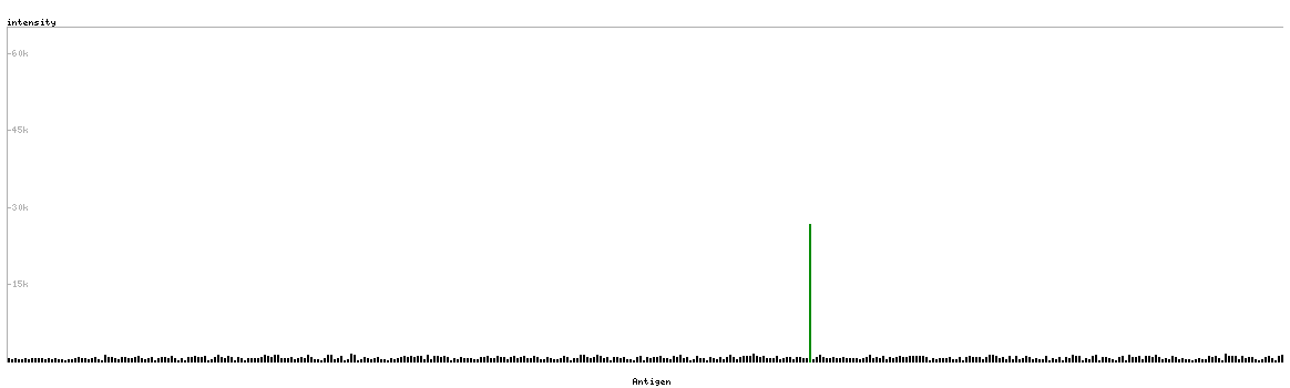 The curve in blue displays the predicted antigenicity i.e. the tendency for different regions of the protein to generate an immune response, with peak regions being predicted to be more antigenic.The curve shows average values based on a sliding window approach using an in-house propensity scale. (read more).