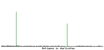 At the top of the view, the position of the antigen (identified by the corresponding HPA identifier) is shown as a green bar. A yellow triangle on the bar indicates a <100% sequence identity to the protein target.