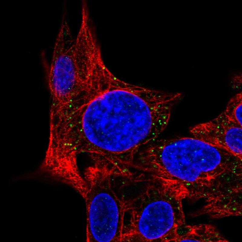 human cell lines: Hep-G2 fixed with PFA, dilution: 1:72 human cell lines: U-251MG fixed with PFA, dilution: 1:72 human cell lines: U2OS fixed with PFA, dilution: 1:72