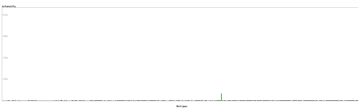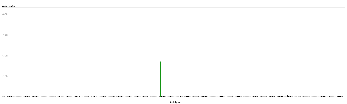 At the top of the view, the position of the antigen (identified by the corresponding HPA identifier) is shown as a green bar. A yellow triangle on the bar indicates a <100% sequence identity to the protein target.