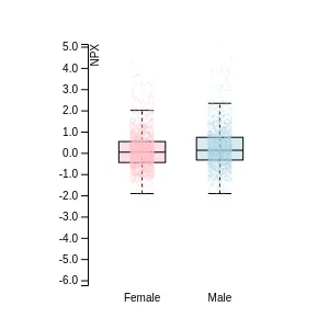 A gene is classified as upregulated in a disease if the average concentration of all samples of that disease is significantly higher (adj P-value<0.005 and NPX difference>=1) than the average concentration of samples of all diseases as measured by PEA . For gender specific diseases the analysis includes only samples corresponding to the same gender from the other diseases.