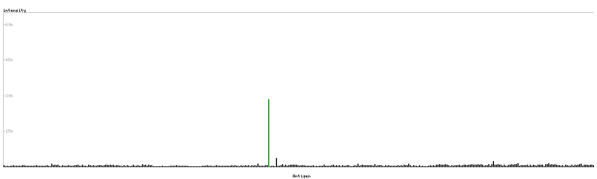 The curve in blue displays the predicted antigenicity i.e. the tendency for different regions of the protein to generate an immune response, with peak regions being predicted to be more antigenic.The curve shows average values based on a sliding window approach using an in-house propensity scale. (read more).