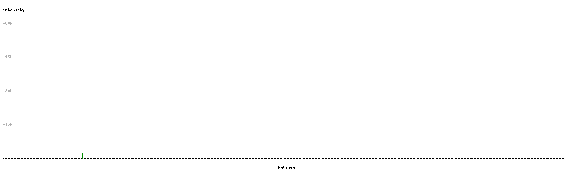 At the top of the view, the position of the antigen (identified by the corresponding HPA identifier) is shown as a green bar. A yellow triangle on the bar indicates a <100% sequence identity to the protein target.