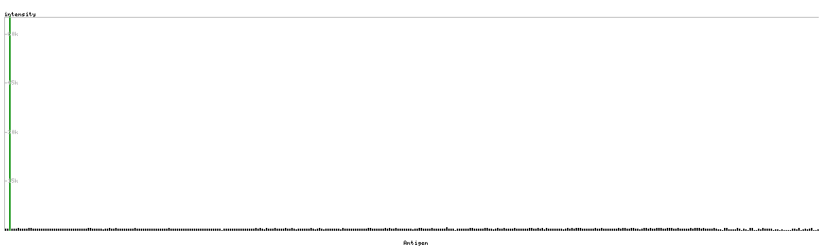 The curve in blue displays the predicted antigenicity i.e. the tendency for different regions of the protein to generate an immune response, with peak regions being predicted to be more antigenic.The curve shows average values based on a sliding window approach using an in-house propensity scale. (read more).