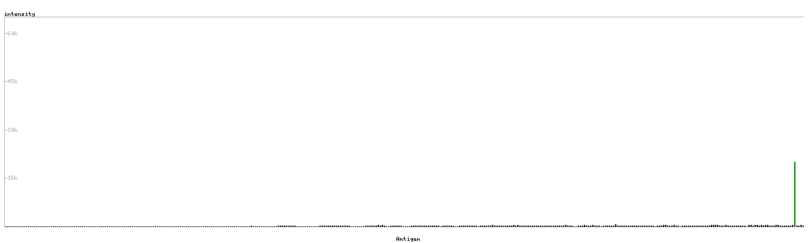 The curve in blue displays the predicted antigenicity i.e. the tendency for different regions of the protein to generate an immune response, with peak regions being predicted to be more antigenic.The curve shows average values based on a sliding window approach using an in-house propensity scale. (read more).