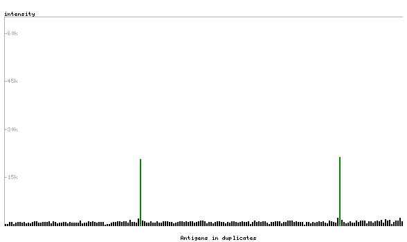 Below the antigens, the maximum percent sequence identity of the protein to all other proteins from other human genes is displayed, using a sliding window of 10 aa residues (HsID 10) or 50 aa residues (HsID 50). The region with the lowest possible identity is always selected for antigen design, with a maximum identity of 60% allowed for designing a single-target antigen (read more).