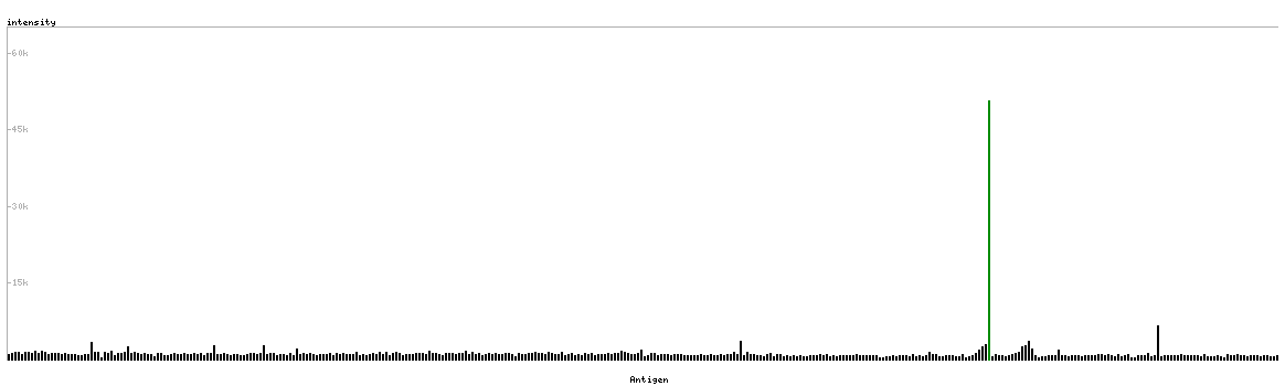 The curve in blue displays the predicted antigenicity i.e. the tendency for different regions of the protein to generate an immune response, with peak regions being predicted to be more antigenic.The curve shows average values based on a sliding window approach using an in-house propensity scale. (read more).