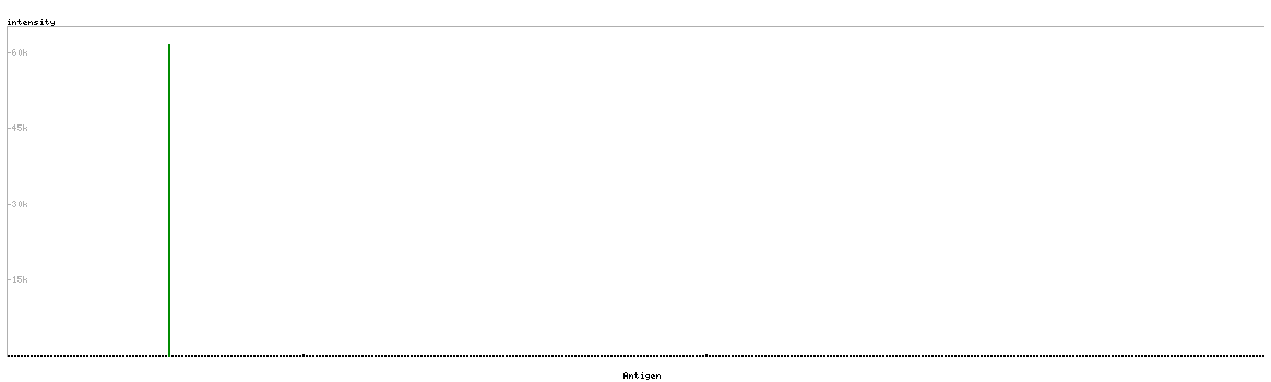 At the top of the view, the position of the antigen (identified by the corresponding HPA identifier) is shown as a green bar. A yellow triangle on the bar indicates a <100% sequence identity to the protein target.
