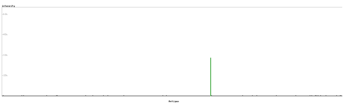 The curve in blue displays the predicted antigenicity i.e. the tendency for different regions of the protein to generate an immune response, with peak regions being predicted to be more antigenic.The curve shows average values based on a sliding window approach using an in-house propensity scale. (read more).
