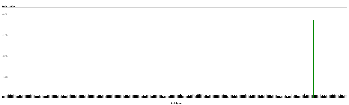 The curve in blue displays the predicted antigenicity i.e. the tendency for different regions of the protein to generate an immune response, with peak regions being predicted to be more antigenic.The curve shows average values based on a sliding window approach using an in-house propensity scale. (read more).