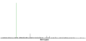At the top of the view, the position of the antigen (identified by the corresponding HPA identifier) is shown as a green bar. A yellow triangle on the bar indicates a <100% sequence identity to the protein target.