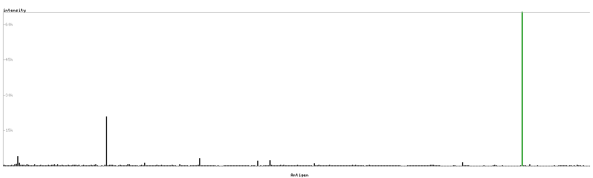 The curve in blue displays the predicted antigenicity i.e. the tendency for different regions of the protein to generate an immune response, with peak regions being predicted to be more antigenic.The curve shows average values based on a sliding window approach using an in-house propensity scale. (read more).
