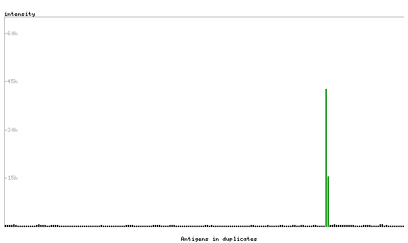 Below the antigens, the maximum percent sequence identity of the protein to all other proteins from other human genes is displayed, using a sliding window of 10 aa residues (HsID 10) or 50 aa residues (HsID 50). The region with the lowest possible identity is always selected for antigen design, with a maximum identity of 60% allowed for designing a single-target antigen (read more).