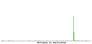 The curve in blue displays the predicted antigenicity i.e. the tendency for different regions of the protein to generate an immune response, with peak regions being predicted to be more antigenic.The curve shows average values based on a sliding window approach using an in-house propensity scale. (read more).