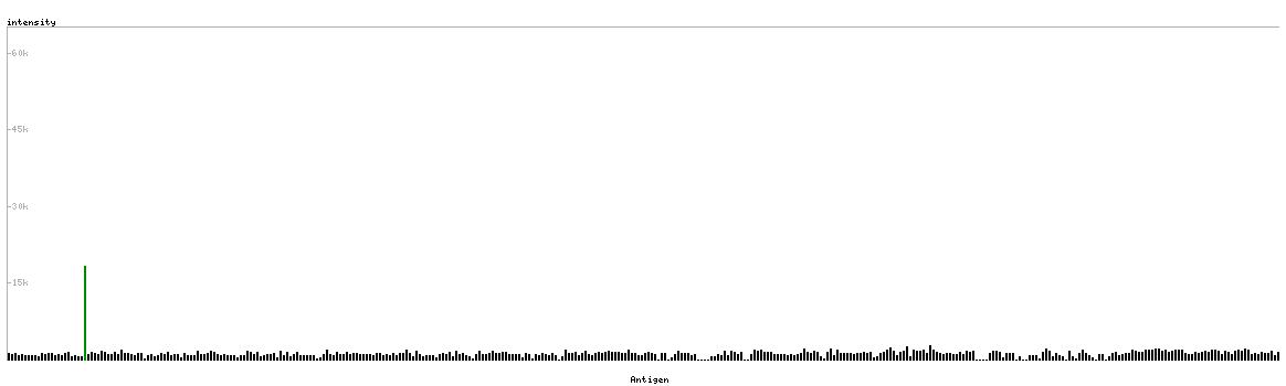 The curve in blue displays the predicted antigenicity i.e. the tendency for different regions of the protein to generate an immune response, with peak regions being predicted to be more antigenic.The curve shows average values based on a sliding window approach using an in-house propensity scale. (read more).