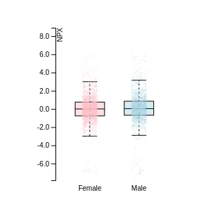 Blood protein levels in 96 healthy adults (aged 50–65) measured at six visits over a two-year period, shown separately for males and females. Relative protein abundances were quantified using the proximity extension assay (PEA) with the Olink Explore HT.