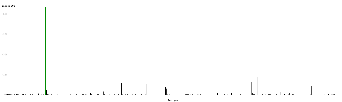 The curve in blue displays the predicted antigenicity i.e. the tendency for different regions of the protein to generate an immune response, with peak regions being predicted to be more antigenic.The curve shows average values based on a sliding window approach using an in-house propensity scale. (read more).