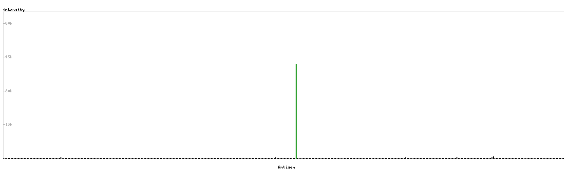 The curve in blue displays the predicted antigenicity i.e. the tendency for different regions of the protein to generate an immune response, with peak regions being predicted to be more antigenic.The curve shows average values based on a sliding window approach using an in-house propensity scale. (read more).