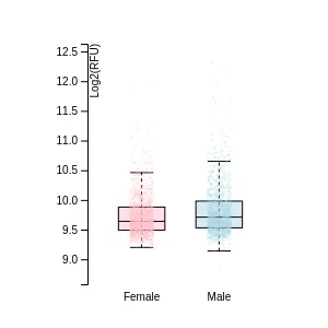 A gene is classified as upregulated in a disease if the average concentration of all samples of that disease is significantly higher (adj P-value<0.005 and NPX difference>=1) than the average concentration of samples of all diseases as measured by PEA . For gender specific diseases the analysis includes only samples corresponding to the same gender from the other diseases.
