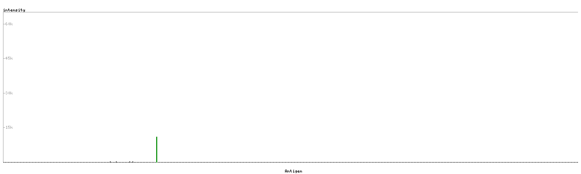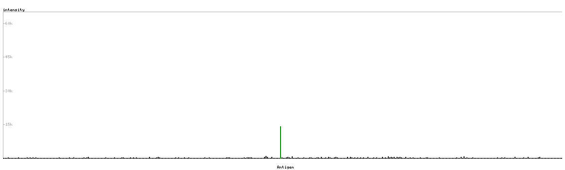 At the top of the view, the position of the antigen (identified by the corresponding HPA identifier) is shown as a green bar. A yellow triangle on the bar indicates a <100% sequence identity to the protein target.