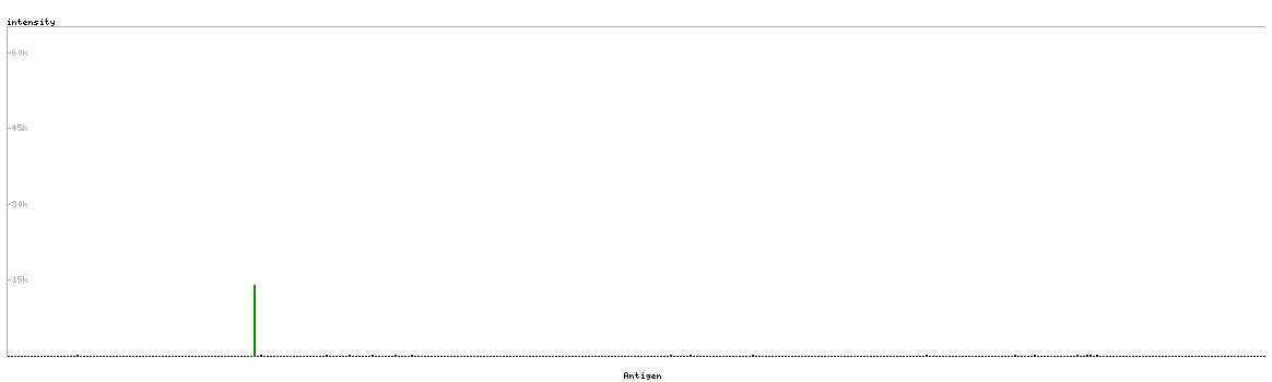 At the top of the view, the position of the antigen (identified by the corresponding HPA identifier) is shown as a green bar. A yellow triangle on the bar indicates a <100% sequence identity to the protein target.