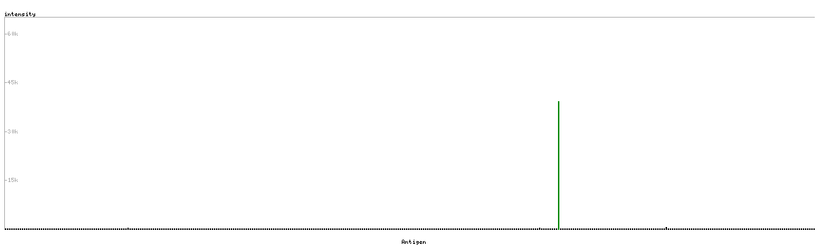 At the top of the view, the position of the antigen (identified by the corresponding HPA identifier) is shown as a green bar. A yellow triangle on the bar indicates a <100% sequence identity to the protein target.