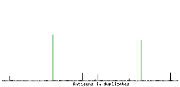 At the top of the view, the position of the antigen (identified by the corresponding HPA identifier) is shown as a green bar. A yellow triangle on the bar indicates a <100% sequence identity to the protein target.