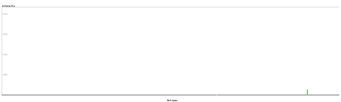 At the top of the view, the position of the antigen (identified by the corresponding HPA identifier) is shown as a green bar. A yellow triangle on the bar indicates a <100% sequence identity to the protein target.