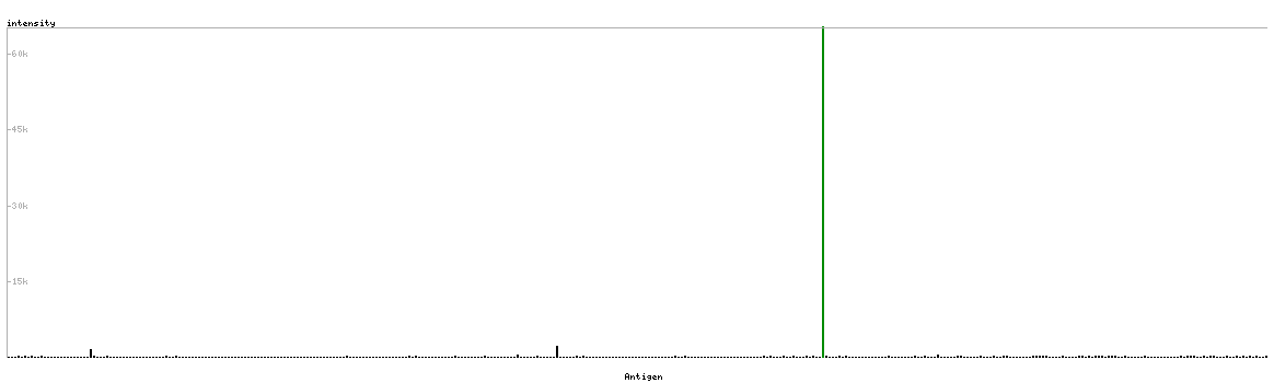 At the top of the view, the position of the antigen (identified by the corresponding HPA identifier) is shown as a green bar. A yellow triangle on the bar indicates a <100% sequence identity to the protein target.