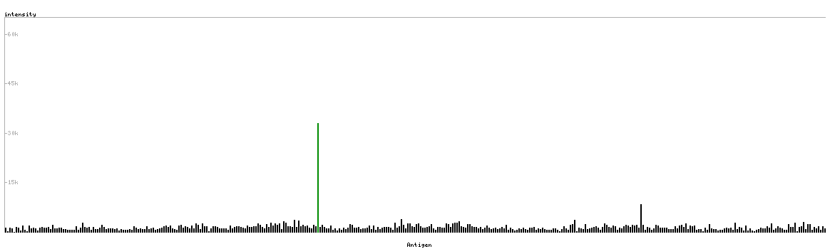 The curve in blue displays the predicted antigenicity i.e. the tendency for different regions of the protein to generate an immune response, with peak regions being predicted to be more antigenic.The curve shows average values based on a sliding window approach using an in-house propensity scale. (read more).