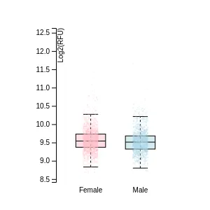 A gene is classified as upregulated in a disease if the average concentration of all samples of that disease is significantly higher (adj P-value<0.005 and NPX difference>=1) than the average concentration of samples of all diseases as measured by PEA . For gender specific diseases the analysis includes only samples corresponding to the same gender from the other diseases.