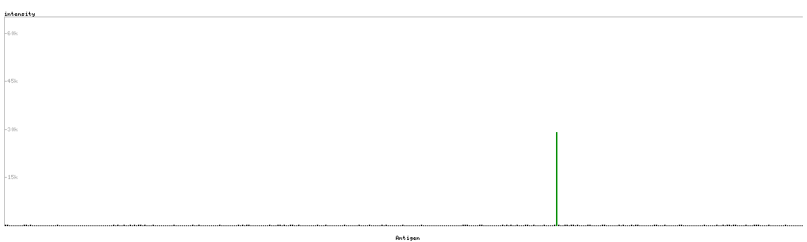 At the top of the view, the position of the antigen (identified by the corresponding HPA identifier) is shown as a green bar. A yellow triangle on the bar indicates a <100% sequence identity to the protein target.