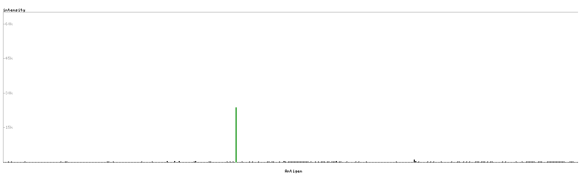 The curve in blue displays the predicted antigenicity i.e. the tendency for different regions of the protein to generate an immune response, with peak regions being predicted to be more antigenic.The curve shows average values based on a sliding window approach using an in-house propensity scale. (read more).