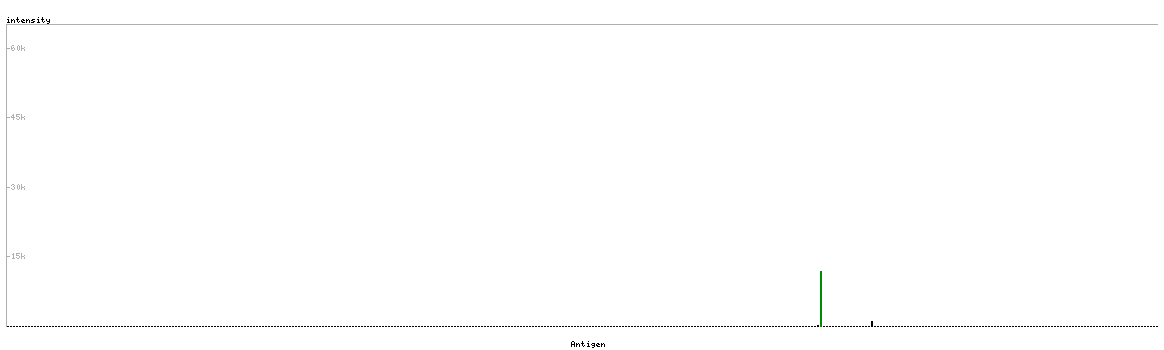 At the top of the view, the position of the antigen (identified by the corresponding HPA identifier) is shown as a green bar. A yellow triangle on the bar indicates a <100% sequence identity to the protein target.