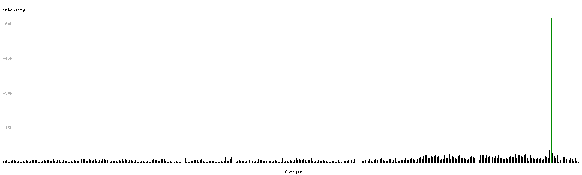 The curve in blue displays the predicted antigenicity i.e. the tendency for different regions of the protein to generate an immune response, with peak regions being predicted to be more antigenic.The curve shows average values based on a sliding window approach using an in-house propensity scale. (read more).