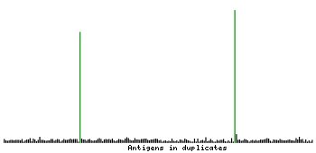 At the top of the view, the position of the antigen (identified by the corresponding HPA identifier) is shown as a green bar. A yellow triangle on the bar indicates a <100% sequence identity to the protein target.