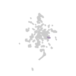 The RNA data was used to cluster genes according to their expression across samples. The resulting clusters have been manually annotated to describe common features in terms of function and specificity. The annotation of the cluster is displayed together with a confidence score of the gene's assignment to the cluster. The confidence is calculated as the fraction of times the gene was assigned to this cluster in repeated calculations and is reported between 0 to 1, where 1 is the highest possible confidence. The clustering results are shown in a UMAP, where the cluster this gene was assigned to is highlighted as a colored area in which most of the cluster genes reside. A table shows the 15 most similar genes in terms of expression profile.