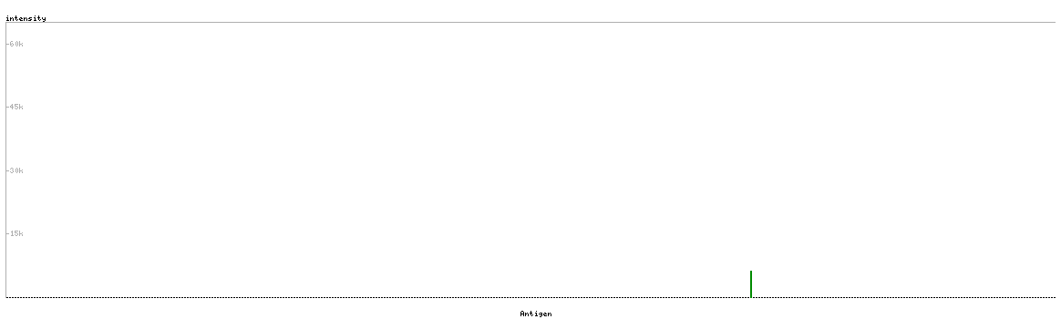 At the top of the view, the position of the antigen (identified by the corresponding HPA identifier) is shown as a green bar. A yellow triangle on the bar indicates a <100% sequence identity to the protein target.