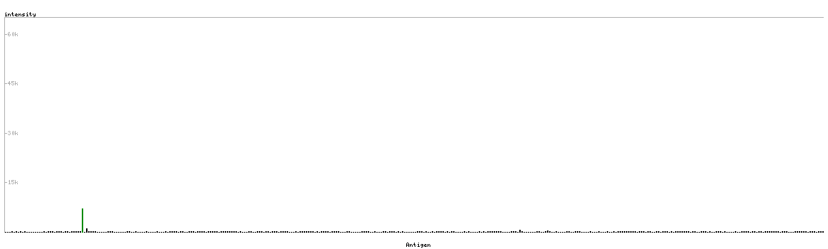 At the top of the view, the position of the antigen (identified by the corresponding HPA identifier) is shown as a green bar. A yellow triangle on the bar indicates a <100% sequence identity to the protein target.