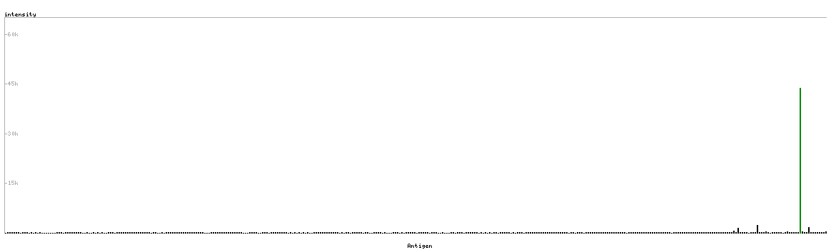 The curve in blue displays the predicted antigenicity i.e. the tendency for different regions of the protein to generate an immune response, with peak regions being predicted to be more antigenic.The curve shows average values based on a sliding window approach using an in-house propensity scale. (read more).