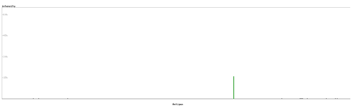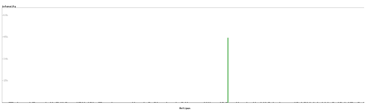 At the top of the view, the position of the antigen (identified by the corresponding HPA identifier) is shown as a green bar. A yellow triangle on the bar indicates a <100% sequence identity to the protein target.