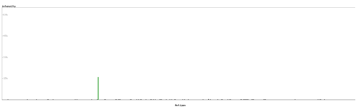 At the top of the view, the position of the antigen (identified by the corresponding HPA identifier) is shown as a green bar. A yellow triangle on the bar indicates a <100% sequence identity to the protein target.