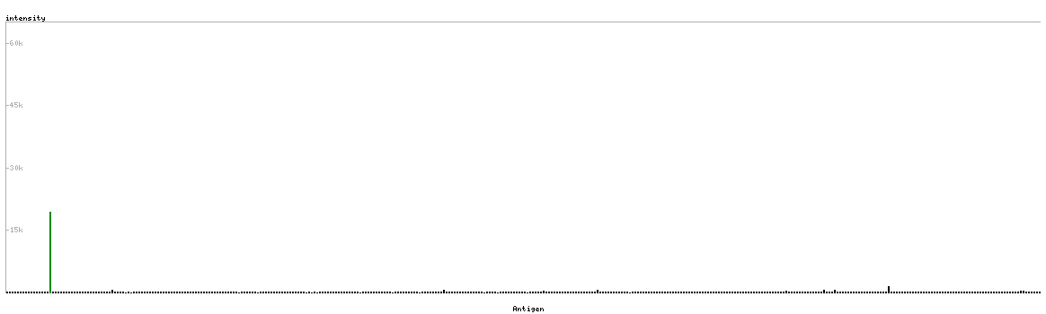 The curve in blue displays the predicted antigenicity i.e. the tendency for different regions of the protein to generate an immune response, with peak regions being predicted to be more antigenic.The curve shows average values based on a sliding window approach using an in-house propensity scale. (read more).